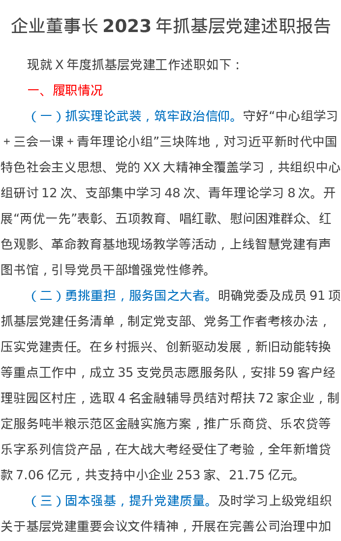 企业董事长2023年抓基层党建述职报告