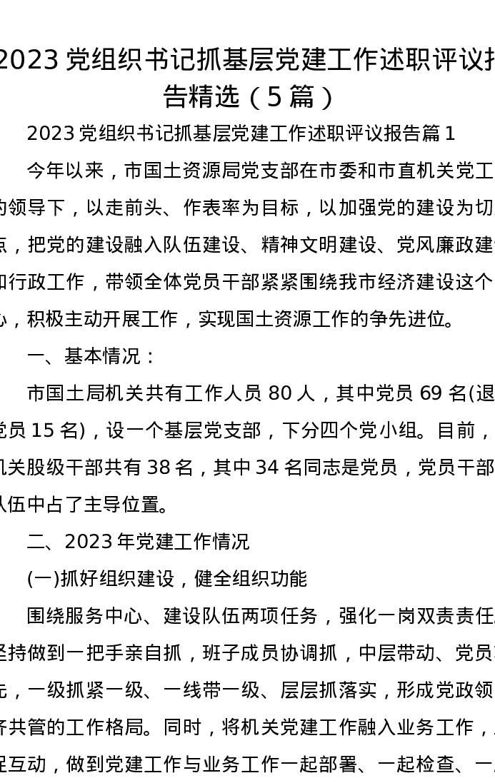 汇编:2023党组织书记抓基层党建工作述职评议报告精选5篇