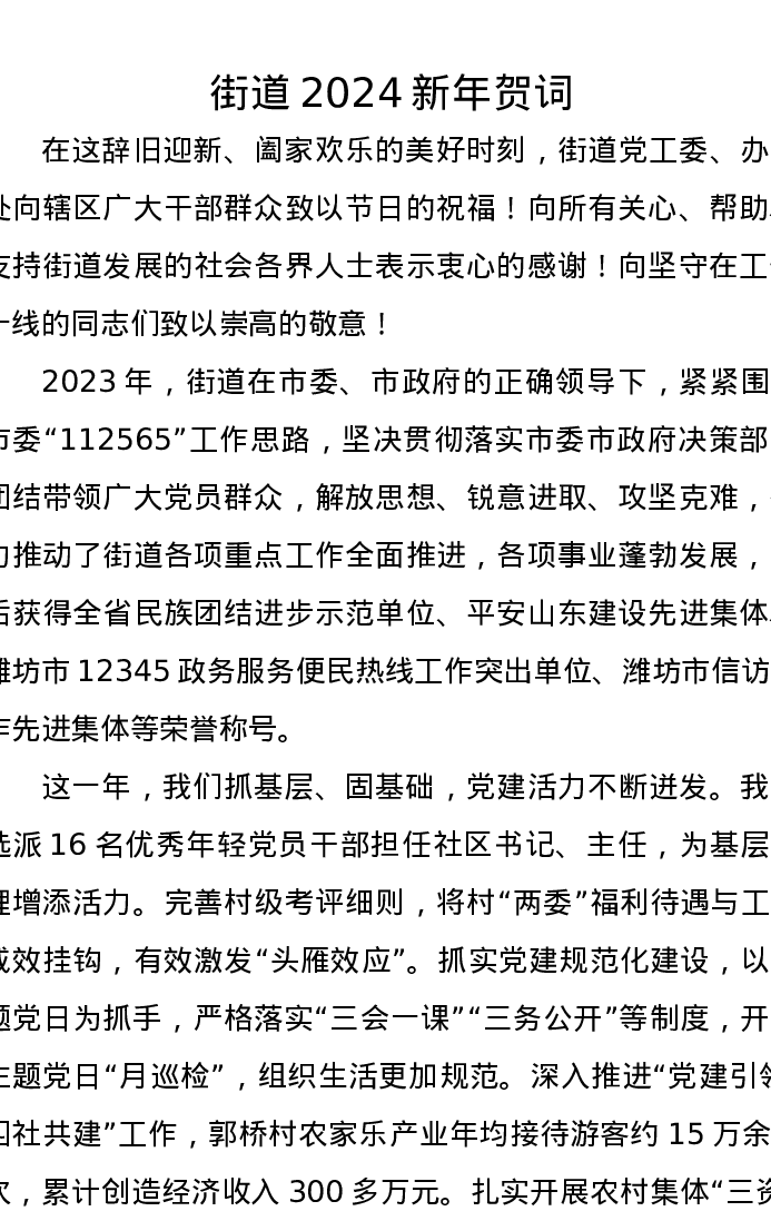街道2024新年贺词