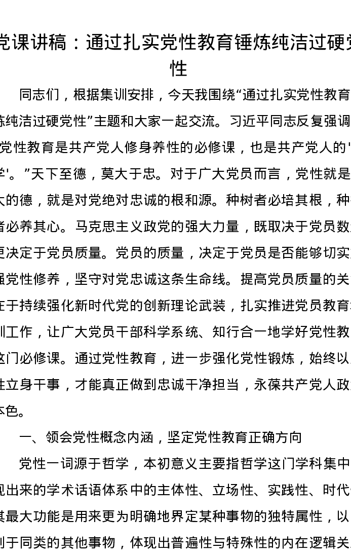 党课讲稿:通过扎实党性教育锤炼纯洁过硬党性
