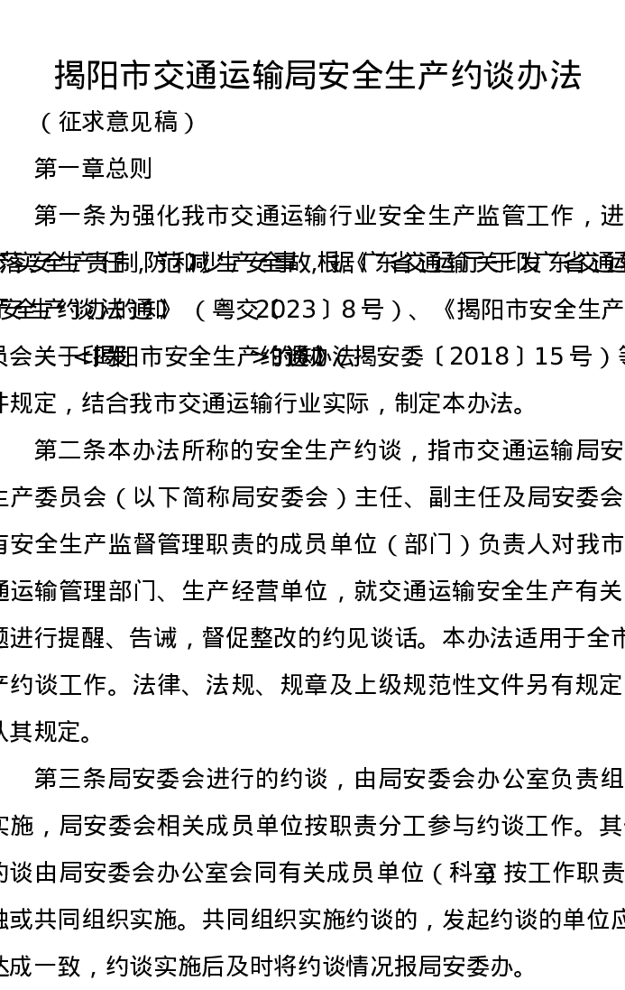 XX市交通运输局安全生产约谈办法