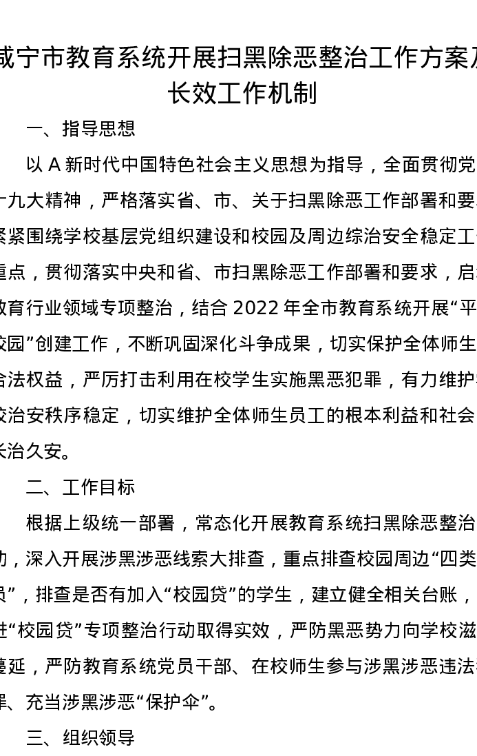 咸宁市教育系统开展扫黑除恶整治工作方案及长效工作机制