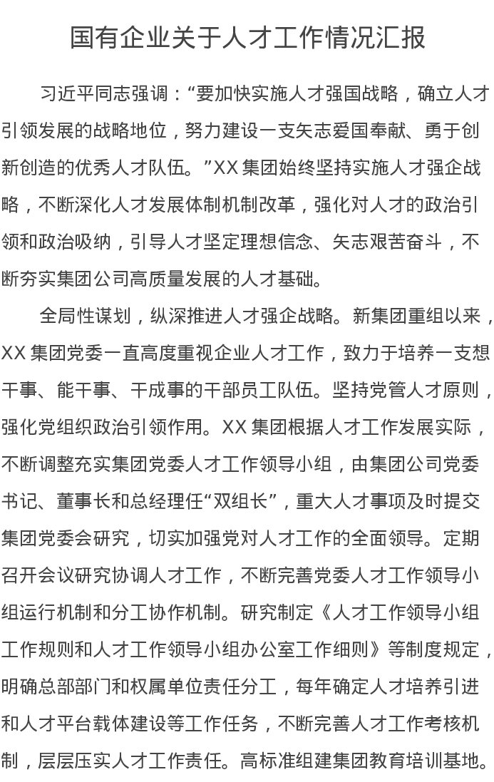 国有企业关于人才工作情况汇报