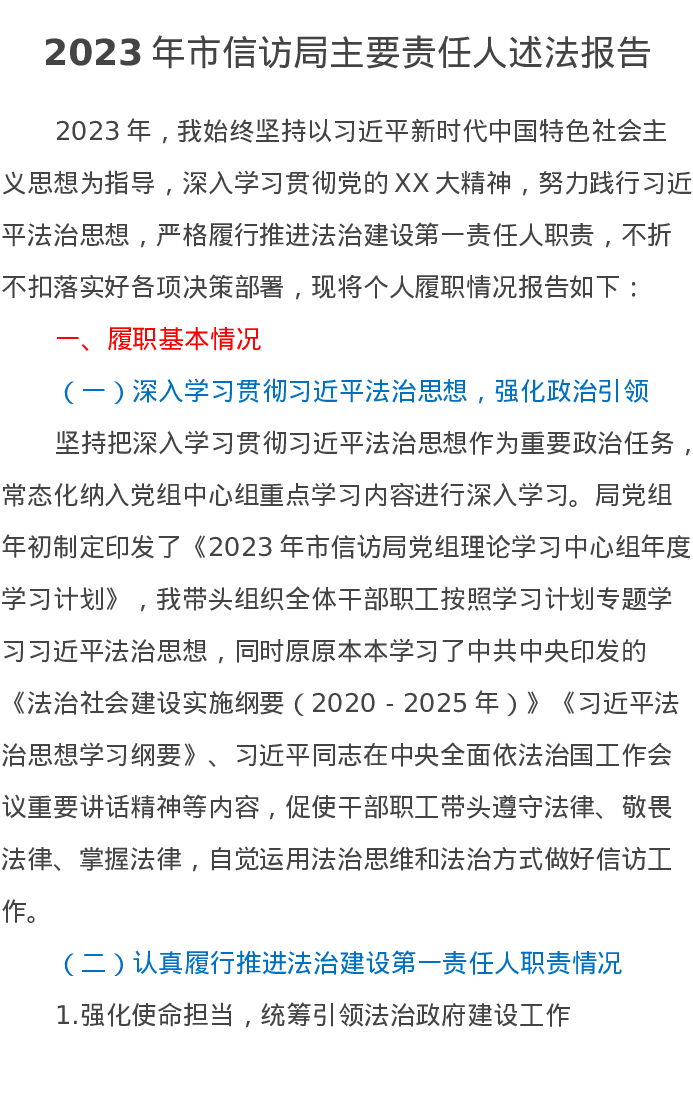 2023年市信访局主要责任人述法报告