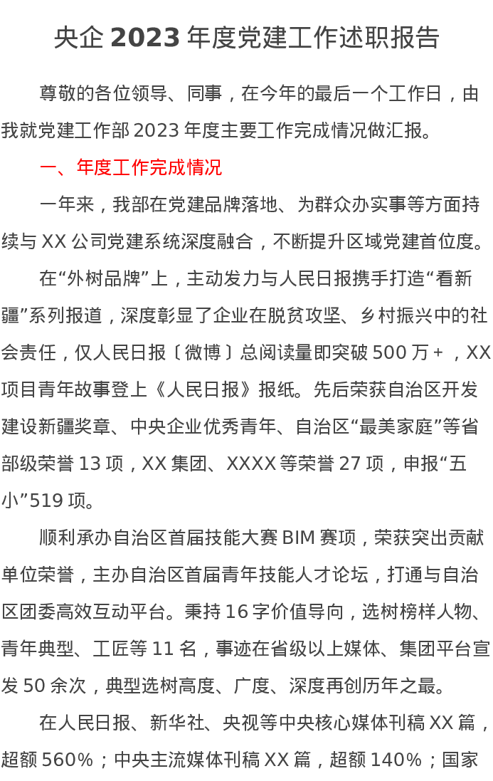 央企2023年度党建工作述职报告