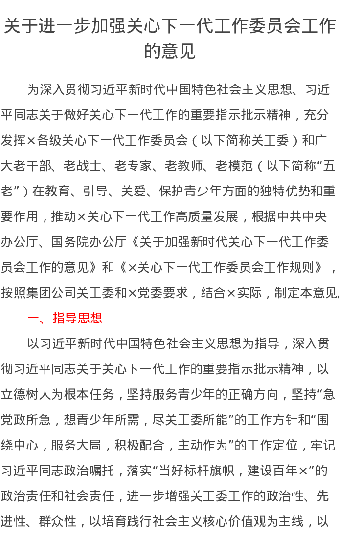 关于进一步加强关心下一代工作委员会工作的意见