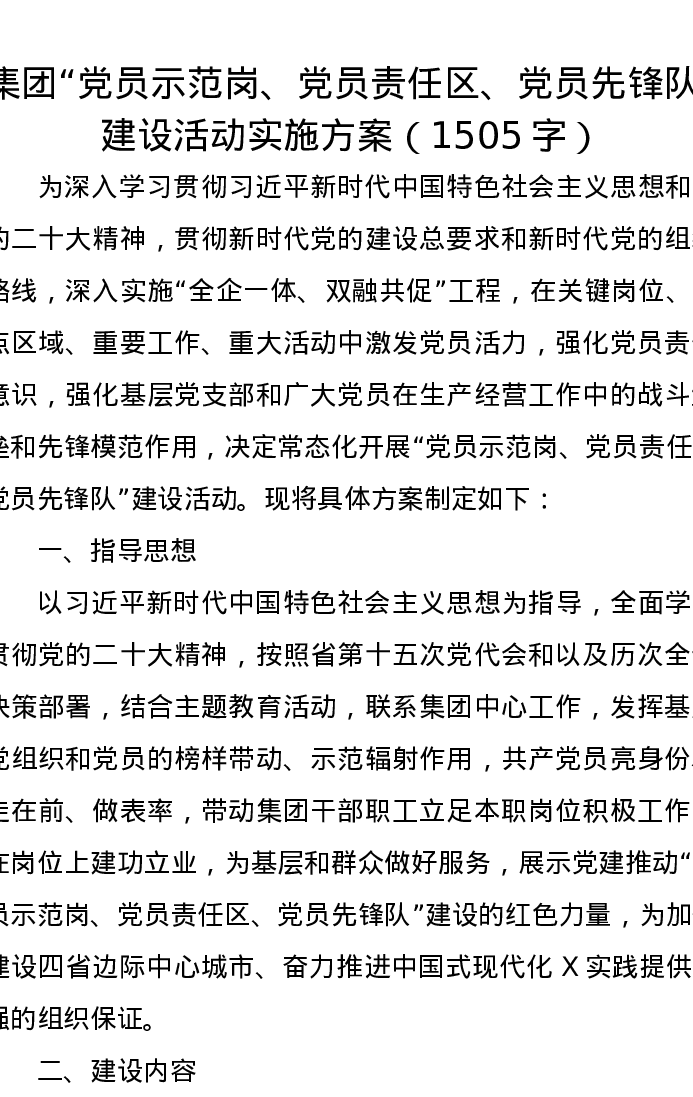 集团“党员示范岗、党员责任区、党员先锋队”建设活动实施方案(1505字)