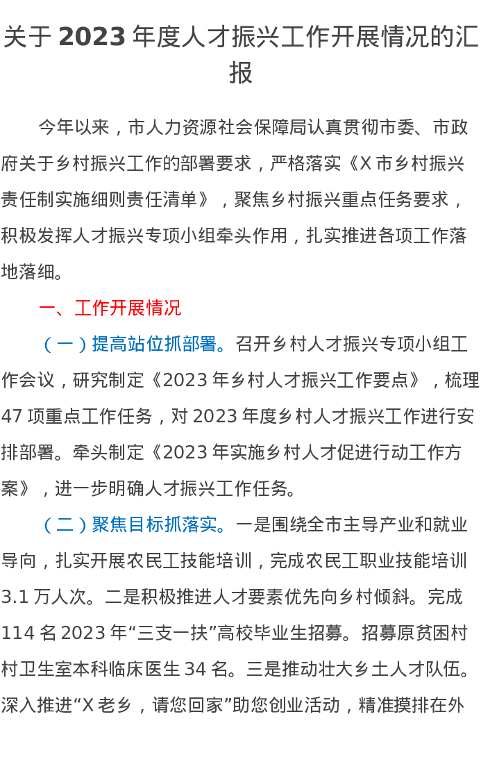 关于2023年度人才振兴工作开展情况的汇报
