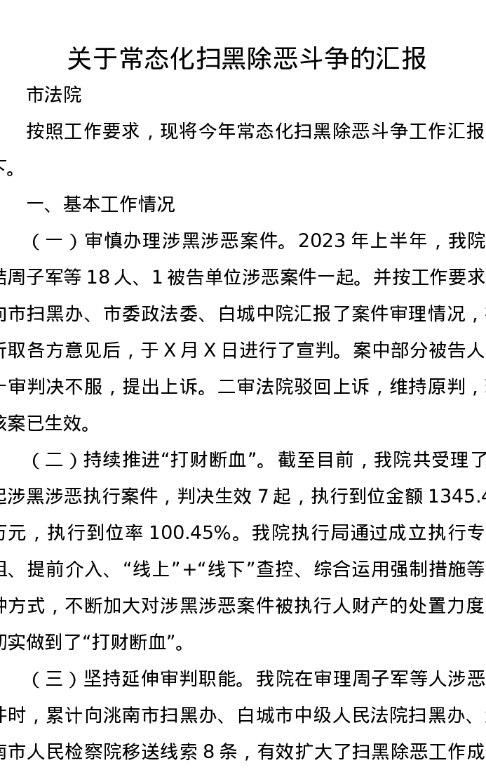 关于常态化扫黑除恶斗争的汇报