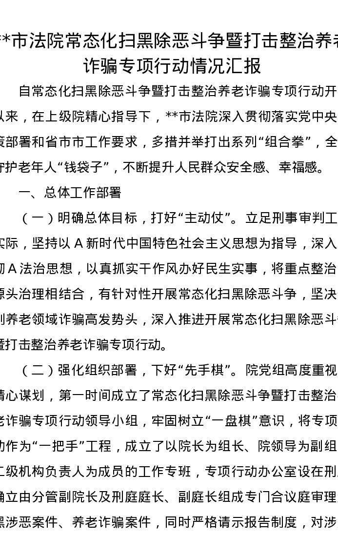 市法院常态化扫黑除恶斗争暨打击整治养老诈骗专项行动情况汇报