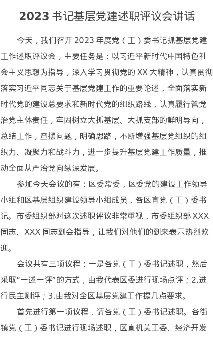 2023书记基层党建述职评议会讲话