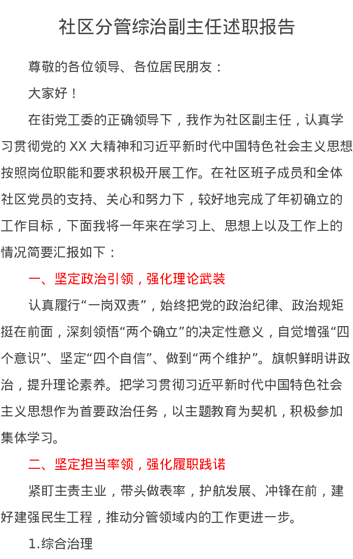 社区分管综治副主任述职报告
