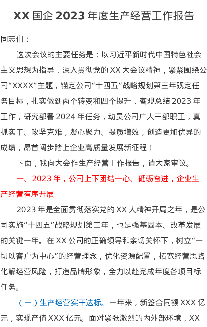 XX国企2023年度生产经营工作报告