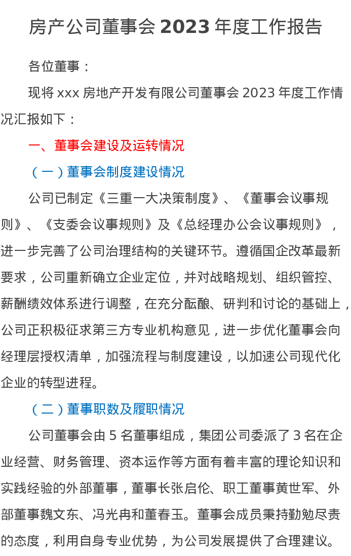 房产公司董事会2023年度工作报告