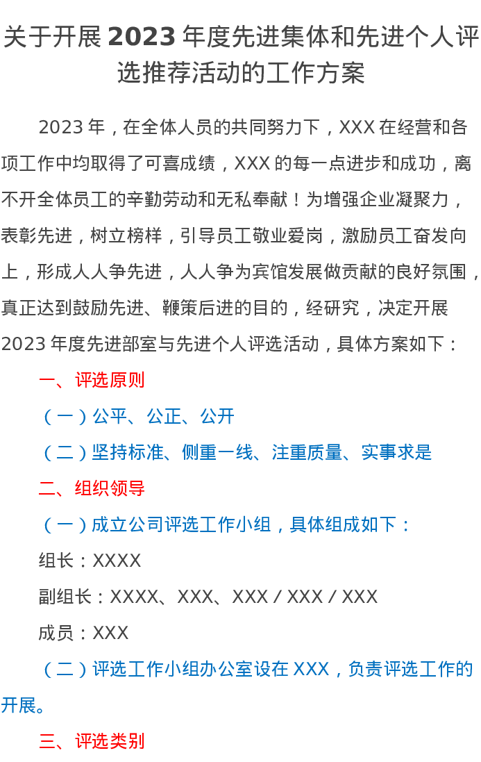 关于开展2023年度先进集体和先进个人评选推荐活动的工作方案