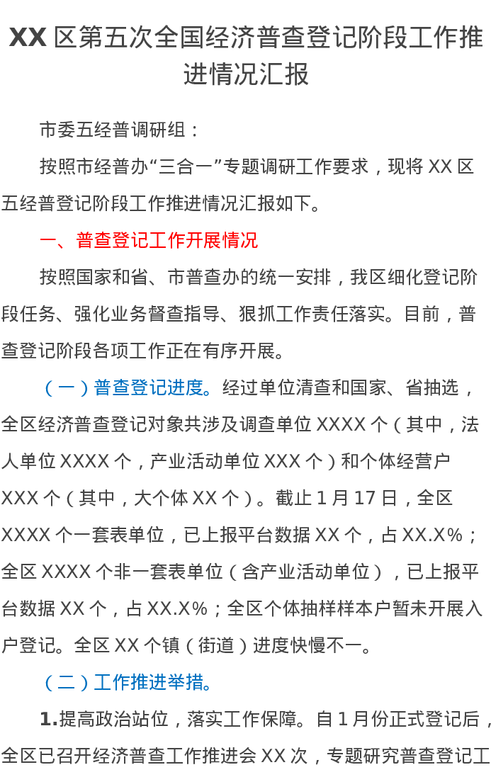 XX区第五次全国经济普查登记阶段工作推进情况汇报