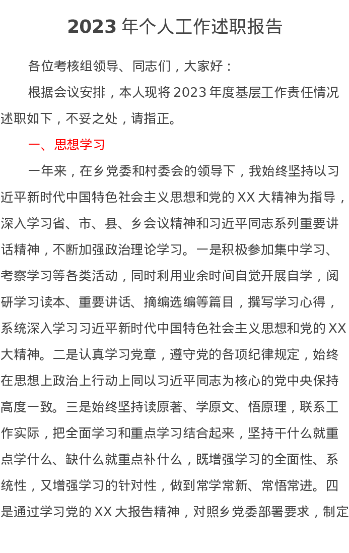 2023年个人工作述职报告1