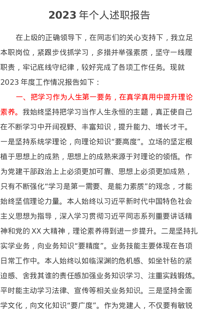 2023年个人述职报告