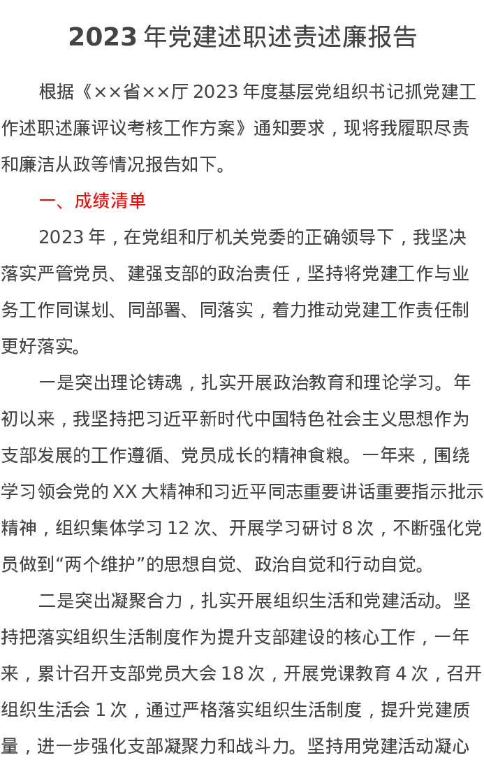 2023年党建述职述责述廉报告