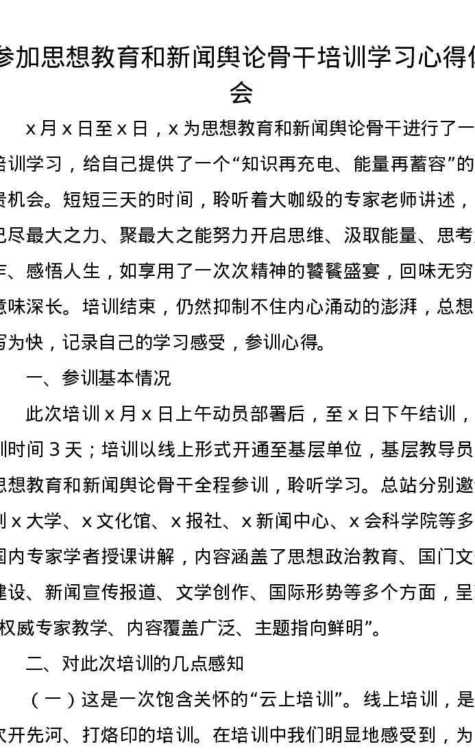 参加思想教育和新闻舆论骨干培训学习心得体会