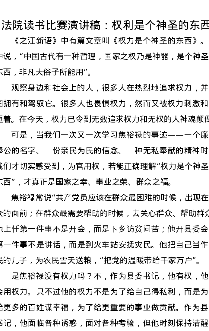 法院读书比赛演讲稿:权利是个神圣的东西