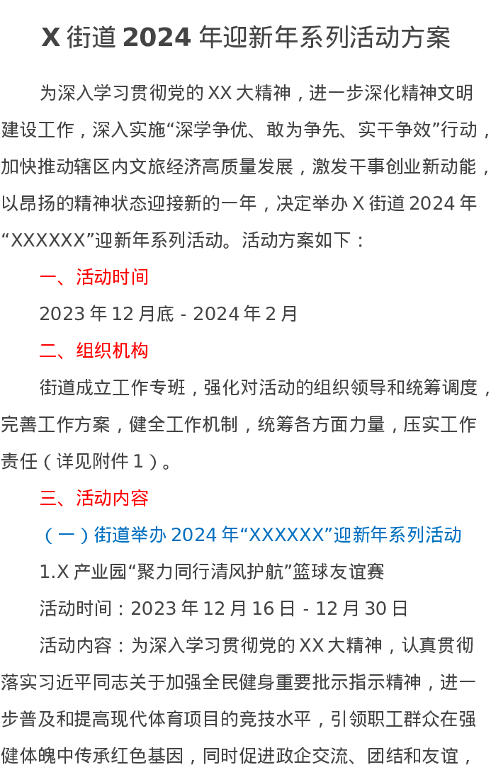 X街道2024年迎新年系列活动方案