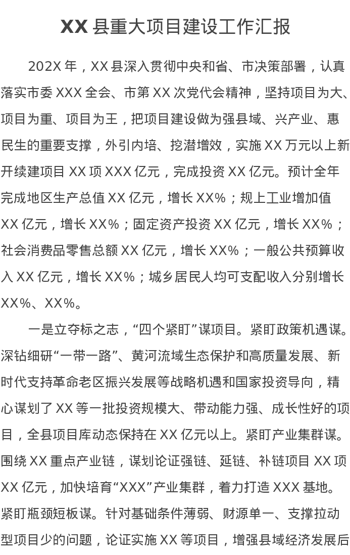 XX县重大项目建设工作汇报