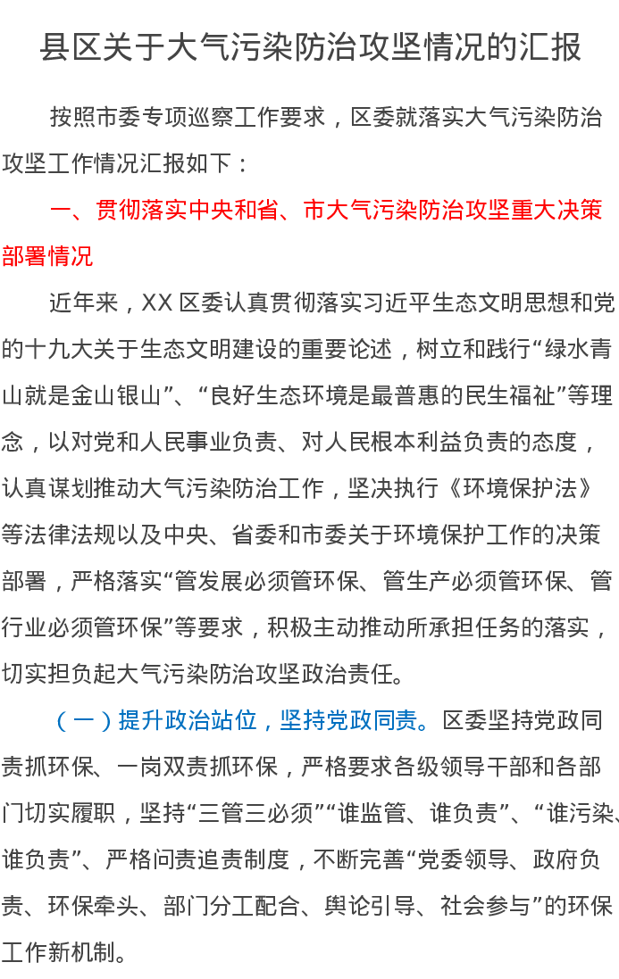 县区关于大气污染防治攻坚情况的汇报