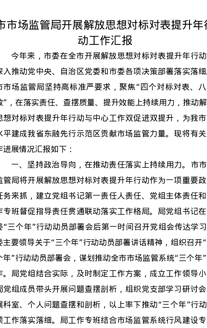 市市场监管局开展解放思想对标对表提升年行动工作汇报