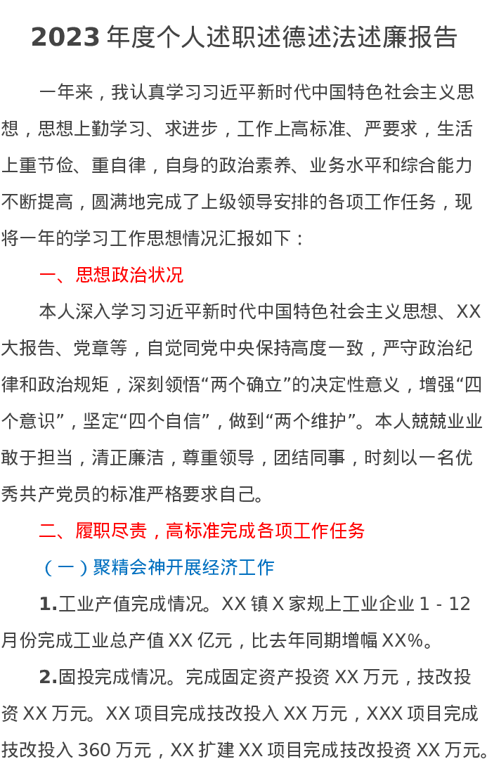 2023年度个人述职述德述法述廉报告
