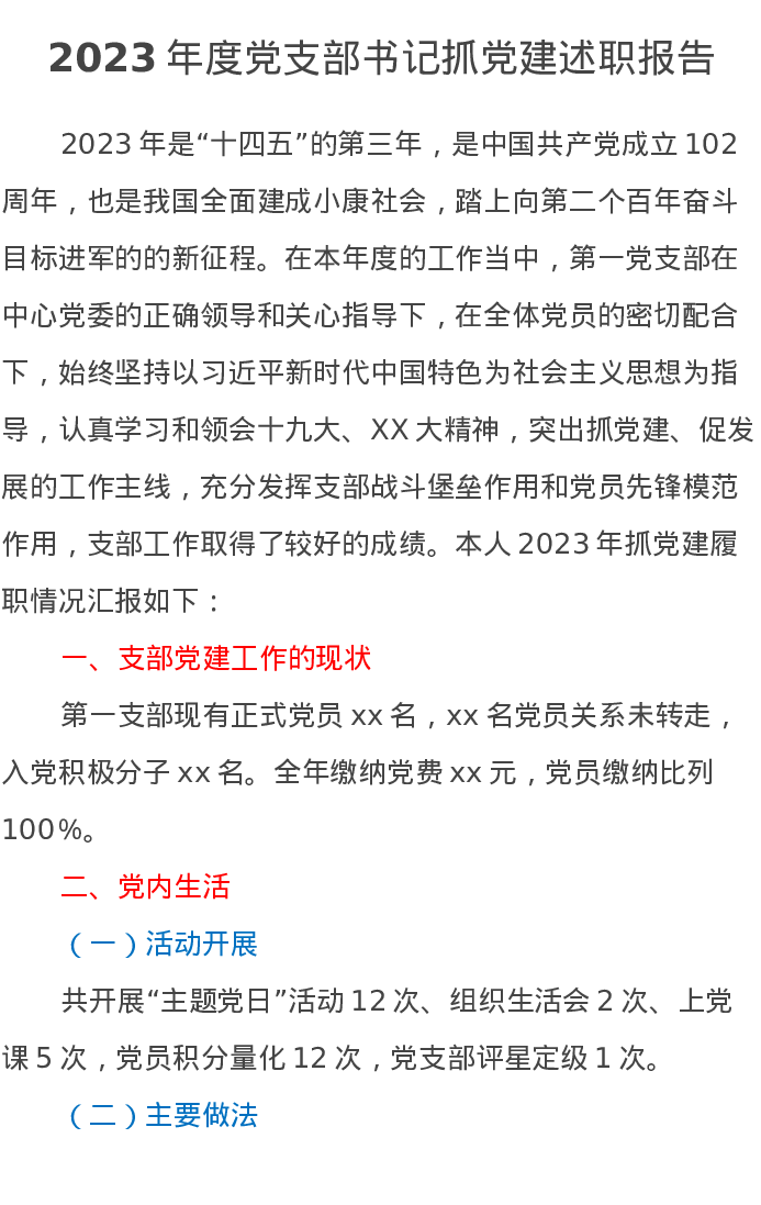 2023年度党支部书记抓党建述职报告