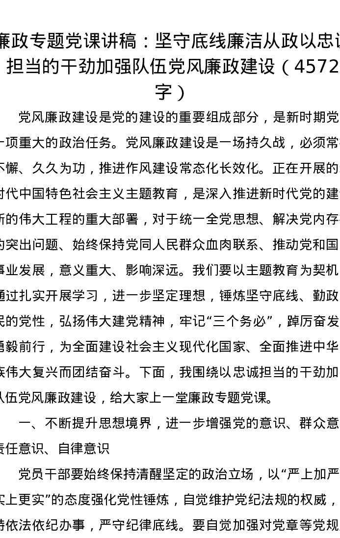 廉政专题党课讲稿:坚守底线廉洁从政以忠诚担当的干劲加强队伍党风廉政建设