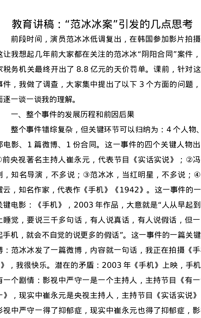 教育讲稿:“范冰冰案”引发的几点思考
