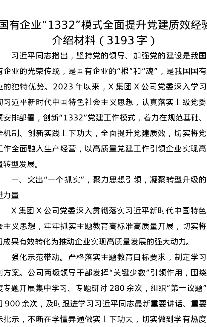 国有企业“1332”模式全面提升党建质效经验介绍材料