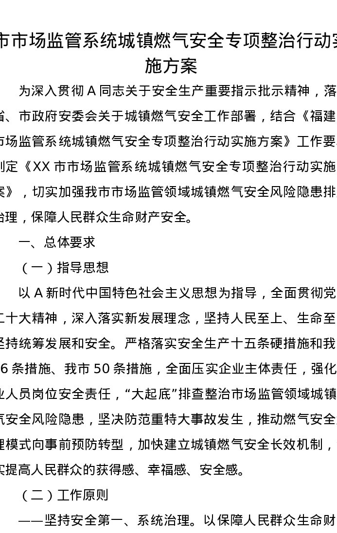 市市场监管系统城镇燃气安全专项整治行动实施方案