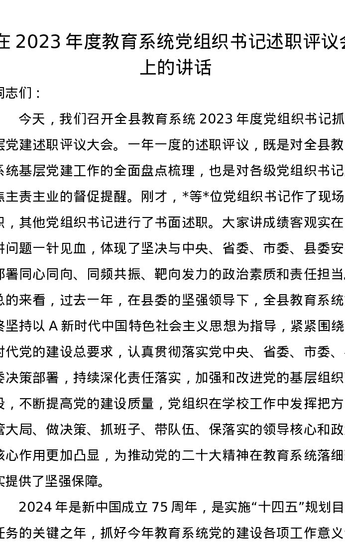 在2023年度教育系统党组织书记述职评议会上的讲话