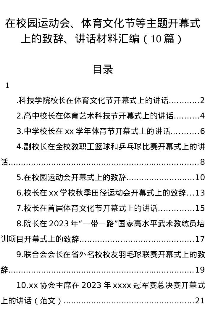 汇编:在校园运动会、体育文化节等主题开幕式上的致辞、讲话10篇