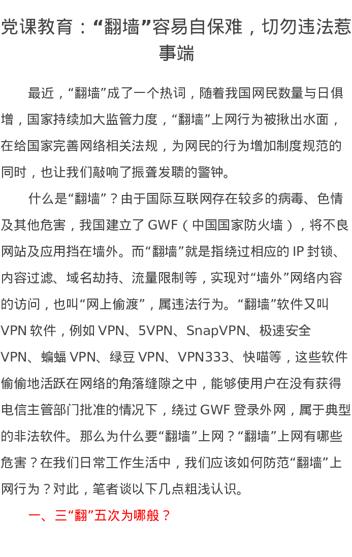党课讲稿:“翻墙”容易自保难,切勿违法惹事端