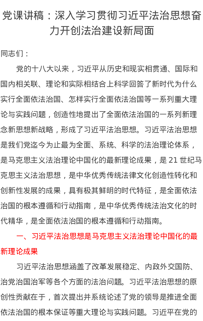 党课讲稿:深入学习贯彻习近平法治思想奋力开创法治建设新局面