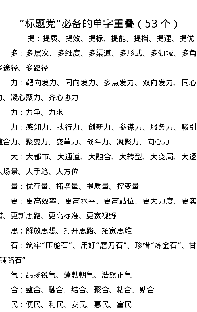 “标题党”必备的单字重叠(53个)