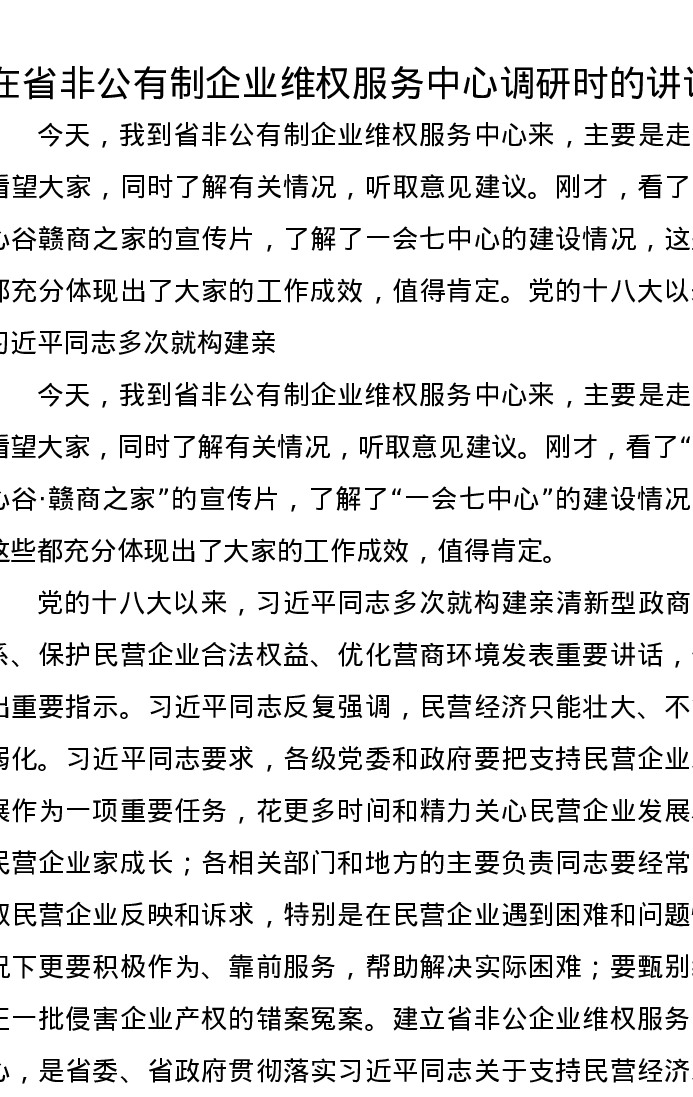 优选讲话:在省非公有制企业维权服务中心调研时的讲话