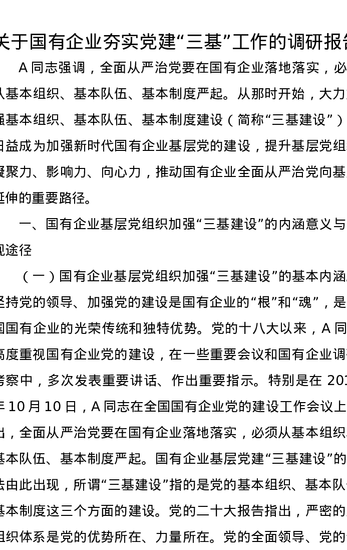 关于国有企业夯实党建“三基”工作的调研报告