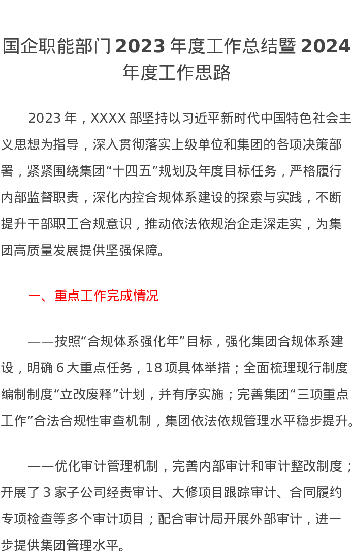 国企职能部门2023年度工作总结暨2024年度工作思路