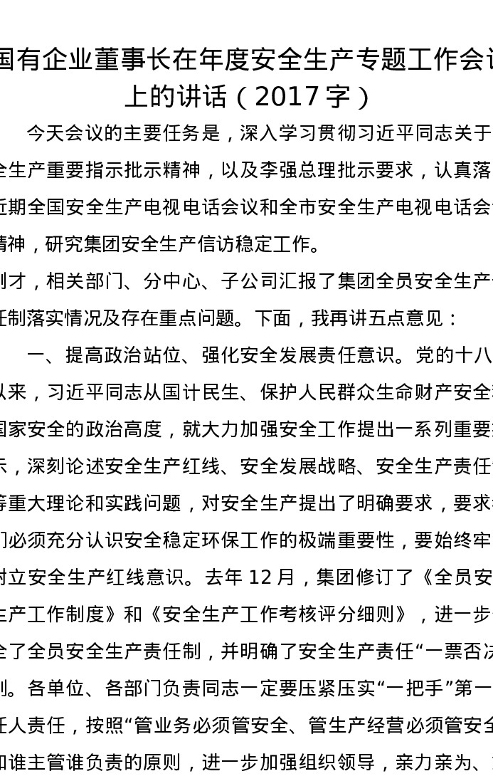 国有企业董事长在年度安全生产专题工作会议上的讲话