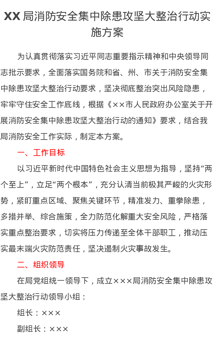 XX局消防安全集中除患攻坚大整治行动实施方案