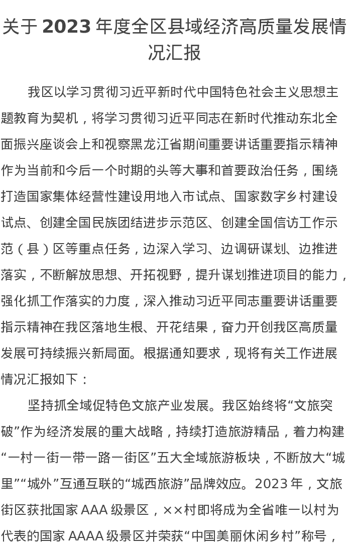 关于2023年度全区县域经济高质量发展情况汇报