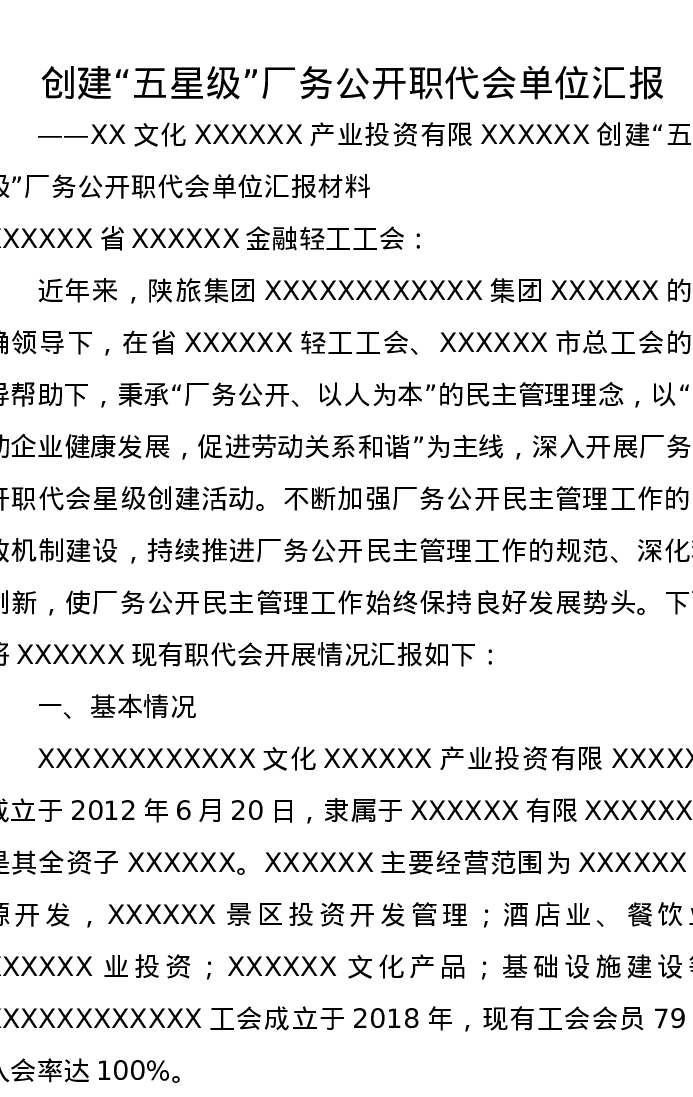 创建“五星级”厂务公开职代会单位汇报
