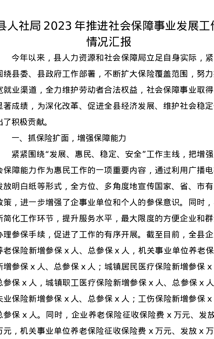 县人社局2023年推进社会保障事业发展工作情况汇报