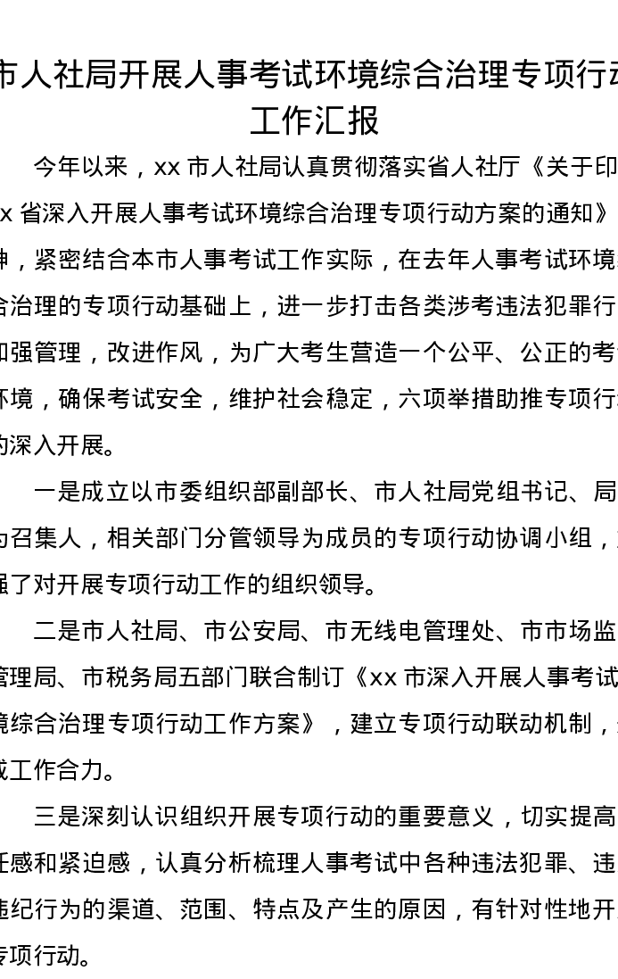 市人社局开展人事考试环境综合治理专项行动工作汇报