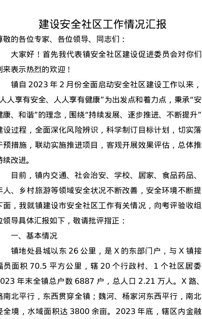 建设安全社区工作情况汇报